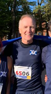 Colin continued his medal haul in early 2024 by retaining his Scottish age group XC title and finished a close 3rd in the BMAF XC Championships in North Wales. Between the months of March to September more awards came his way with a M60 Scottish 10 miles gold, a BMAF M65 relay team silver and 2nd quickest individual time, another Scottish M65 track title over 5000m, a M60 Scottish 10K road silver and a BMAF M65 half marathon title. The remarkable thing about these superb performances was that Colin was beginning to experience some health issues. However, his determination and strength of mind carried him onwards. In late October he ran the fastest leg in the BMAF XC relay championships held in England to help Cambuslang to team gold. The following day he lined up for the Scottish Veteran Harriers 10000M track event and duly trimmed his own M65 Scottish record to 37.25.61. One week later at the age of 66 he was a clear winner of the Scottish M60 4K XC title. By this time with an operation pending and in spite of considerable discomfort and restricted stride range he honoured his selection to the Scottish M65 team for the British and Northern Ireland XC International in Belfast. His hope was that a lengthy warm up would help his issues and “subside enough for the race and” he “could mix it with the others”. Unfortunately it did not quite work out in this way. Not surprisingly he failed to match the early fast pace and was left adrift of the leading pack. However, in the 2nd half of the race he was, through sheer determination, able to overtake some runners just in front and was even closing in on the 2nd and 3rd athletes. In the end he finished 4th only 12 and 11 seconds behind the silver and bronze medallists. He had given his all as usual and had the satisfaction of leading his Scottish team mates to the bronze medals. His post race private comment was