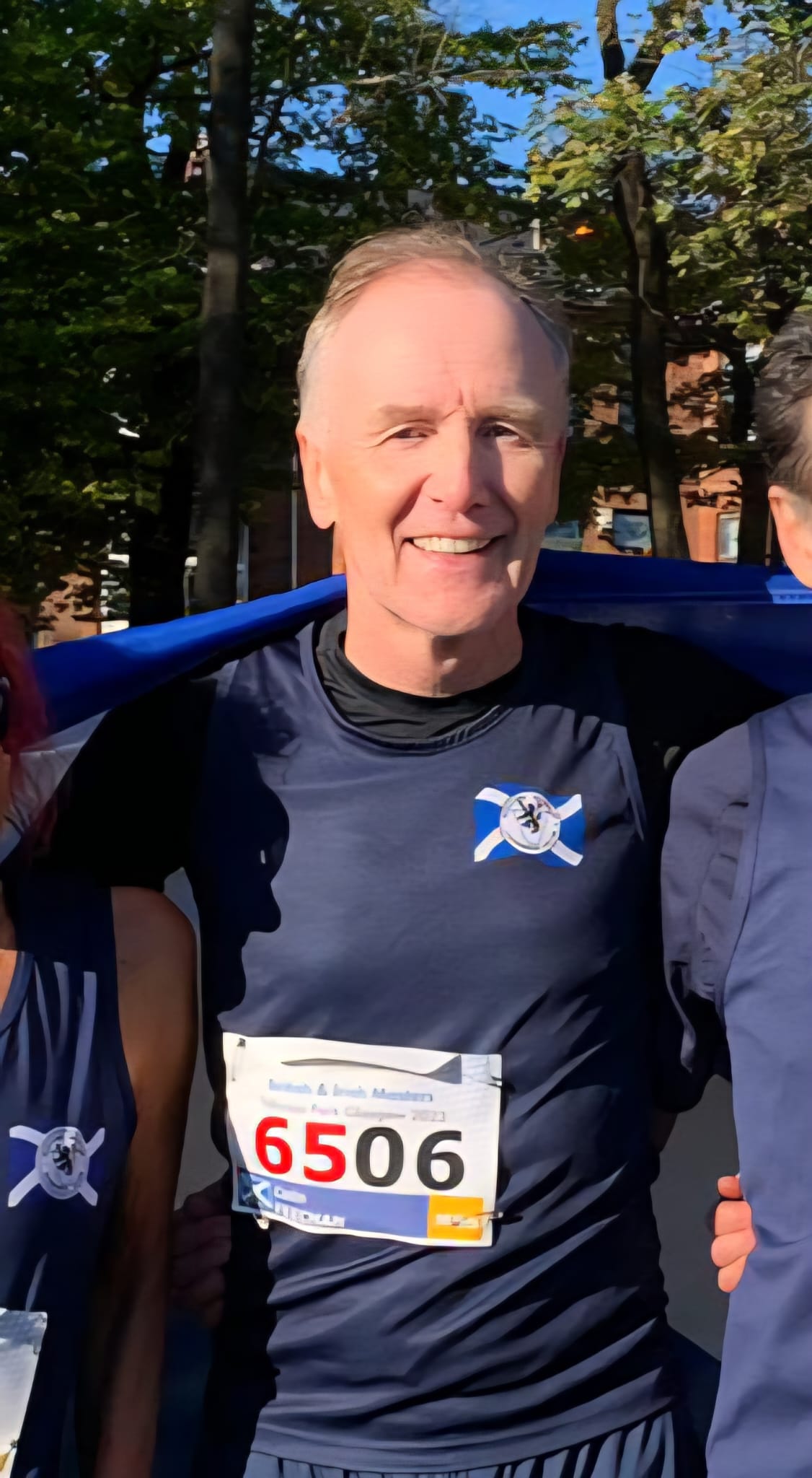 A victory in 2021 in the Scottish Masters M60 10000M Track Championships signalled that he was back. A further 4 Scottish medals and 5 BMAF medals were added the following year and in in 2023 in his final 8 months as a M60 competitor he added a further 2 Scottish and 2 BMAF medals.